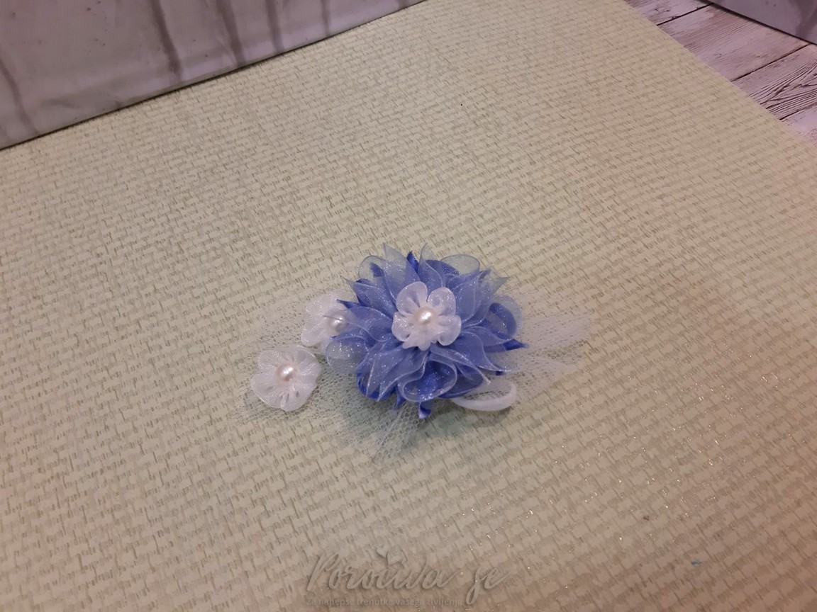 Maturantski korsaž je sestavljen iz različno velikih vrtnic iz organce. Korsaž je lahko tudi v drugi barvni kombinaciji. Namesto modre lahko damo drugo barvo. Na spodnji strani korsaža je pritrjena elastika, ki jo ovije maturantka okrog zapestja. Velikost je cca. 7cm.