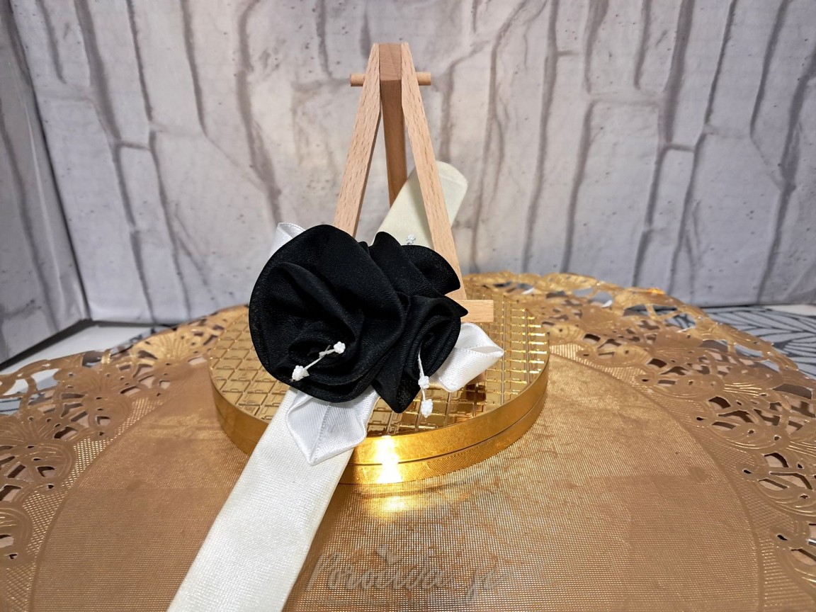 Maturantski korsaž sestavljajo tri velike satenaste vrtnice s perlicami na sredini. Vrtnicam so dodani beli satenasti listi. Korsaž je pritrjen na odsevni trak, ki se ovije okrog roke.