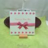 Vabilo za krst je kvadratne oblike velikosti cca. 15 x 15 cm in se odpira od spodaj navzgor. Notranja stran je namenjena vsebini vabila. Na zunanji strani je potisk majhnih pikapolonic zgoraj in spodaj, na sredini je satenast trak zvezan v pentljo pink barve. Na sprednji strani je tudi napis v roza barvi Vabilo na sveti krst.