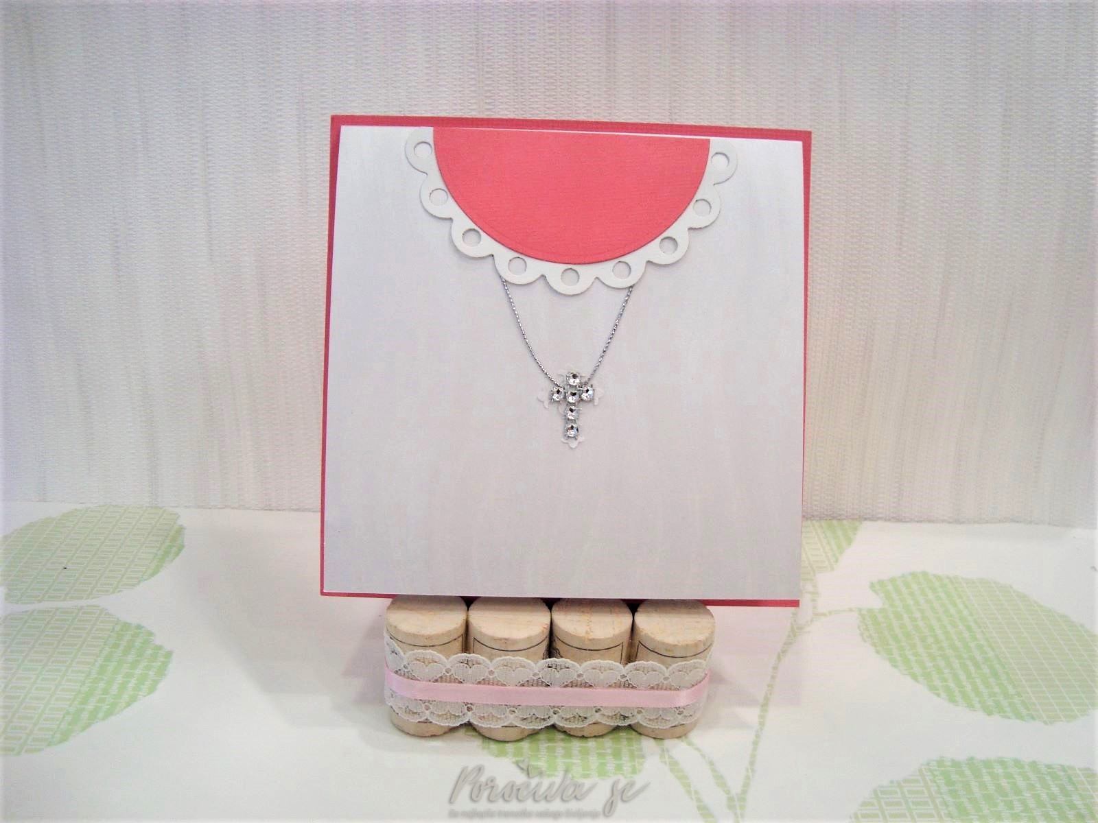 Vabilo za obhajilo ali konfirmacijo, ki ponazarja obleko deklice ob sprejemu zakramenta.