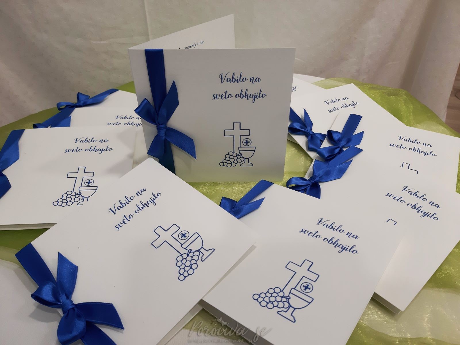 Vabilo za obhajilo v živahnejši barvni kombinaciji.