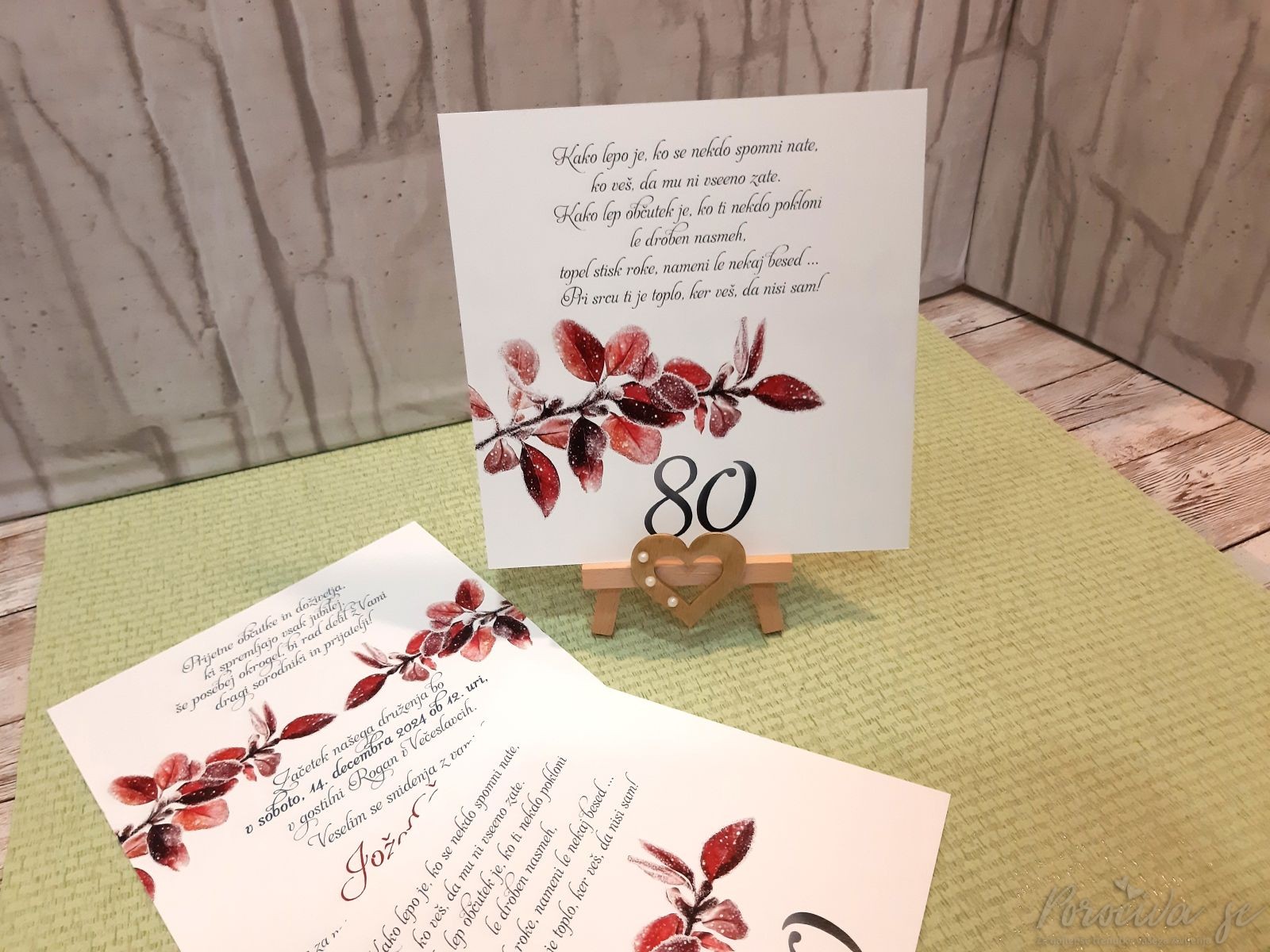Vabilo za obletnico Zimska z zimskim motivom cvetja, saj se okrogli jubilej lahko praznuje tudi v zimskem času.